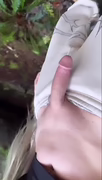 8” blonde trans woman stroking, cumming, and playing with her BWC outdoors and in public places